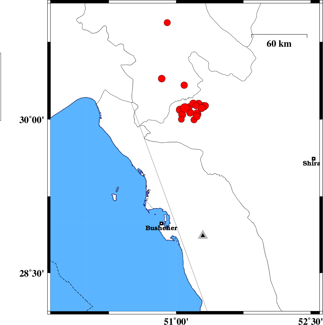 2025/01/06 19:58:23.6 23:28:23.6 28.28752.36712 ML:3.6 Fars Province, 51 km North of Jam