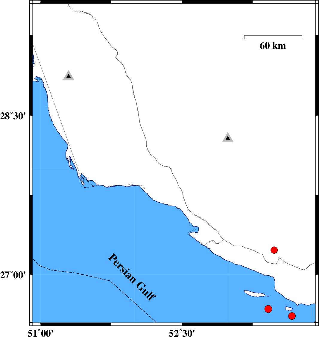 Persian Gulf, 30 km -West of Bandar-e kangan | |