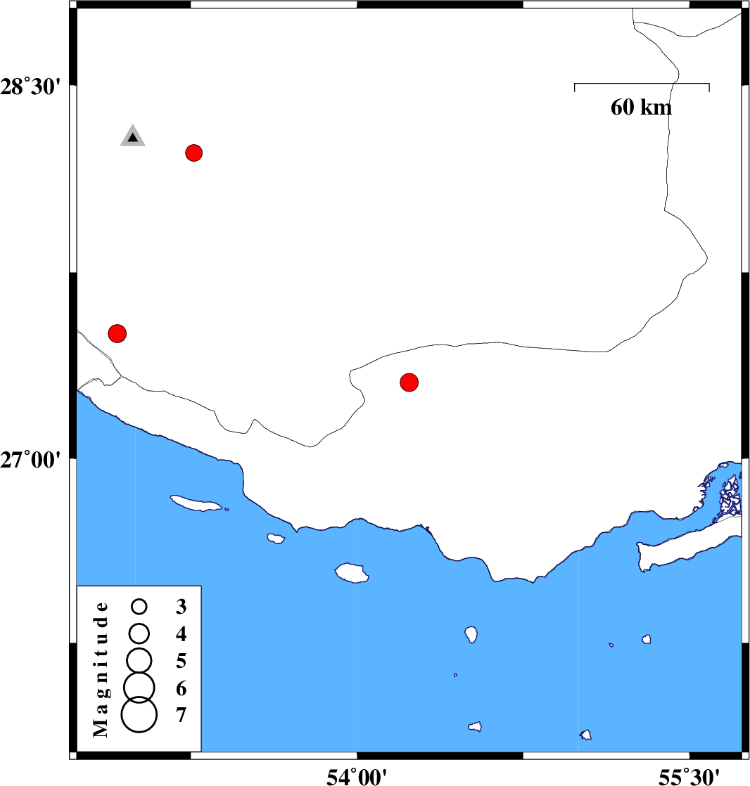 | 2025/01/21 | 20:49:41.6 | 00:19:41.6 | 27.503 | 52.918 | 10 | ML:3.7 | Fars Province, 6 km of Mehr |