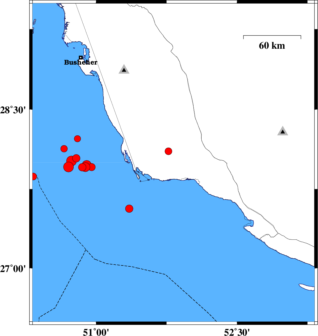 Bushehr Province, 30 km North-West of Bandar-e kangan | |