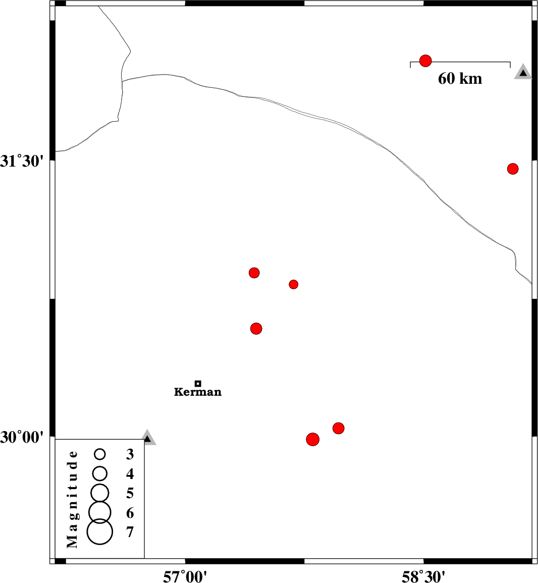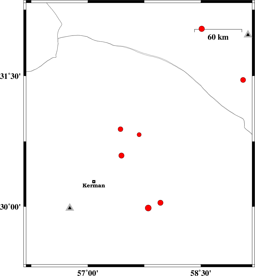 | 2025/01/17 | 07:35:01.9 | 11:05:01.9 | 29.984 | 57.802 | 12 | ML:3.7 | Kerman Province, 77 km South-East of Kerman | ||