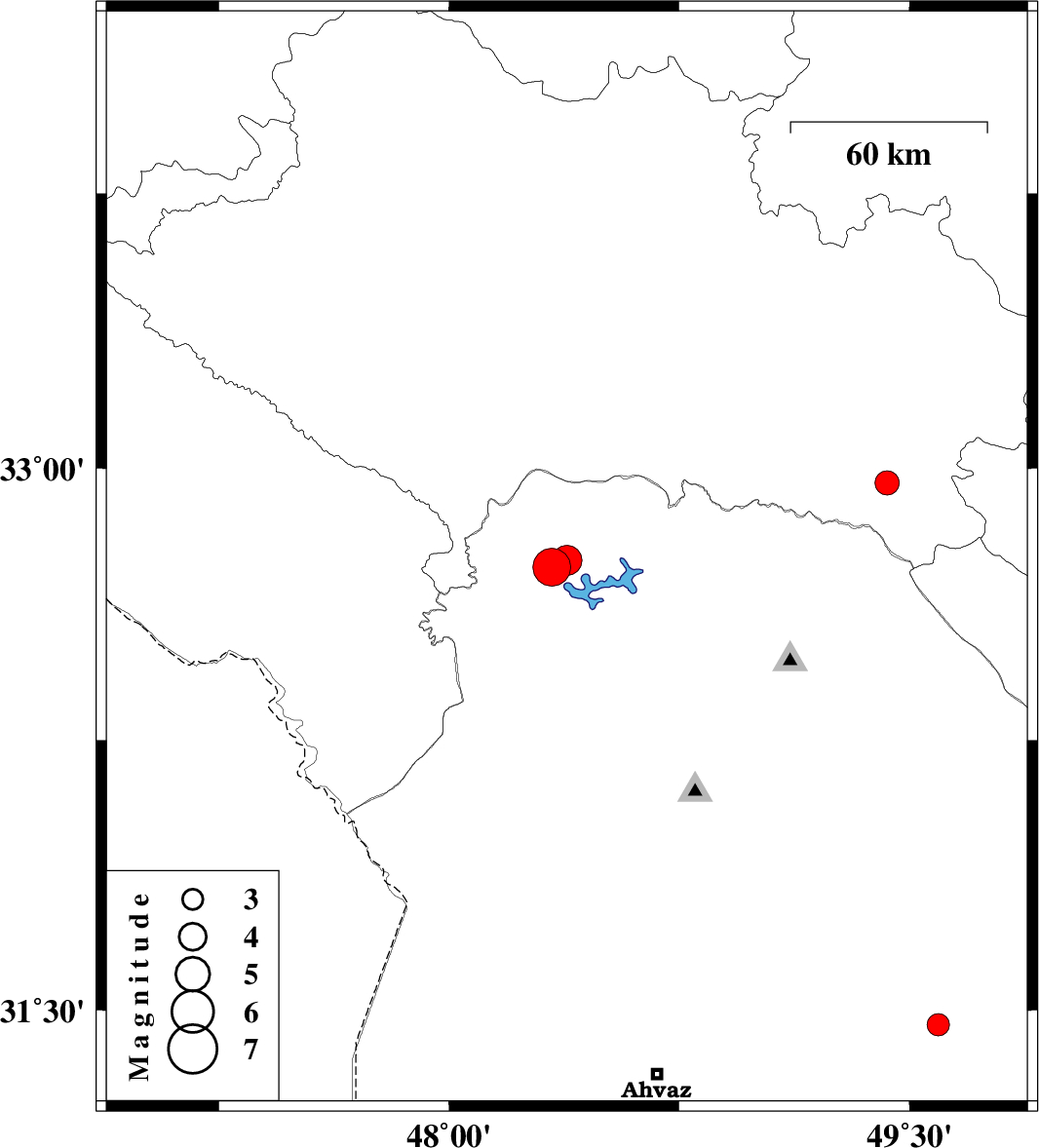 | 2025/02/16 | 18:48:28.6 | 22:18:28.6 | 32.746 | 48.384 | 12 | ML:4.4 | Khoozestan Province, 32 km North of Andimeshk | ||
