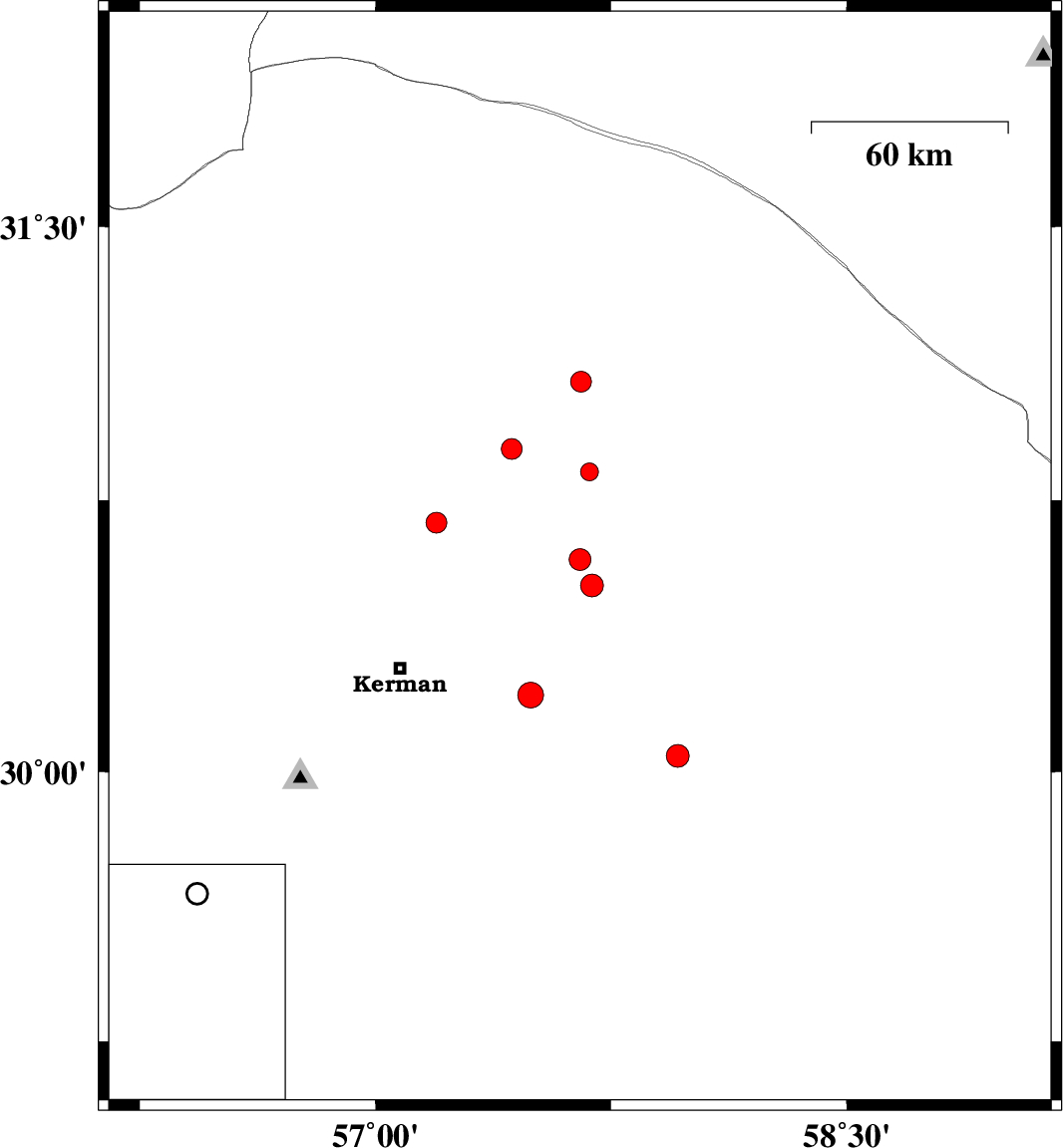 | 2025/01/25 | 15:15:59.0 | 18:45:59.0 | 30.044 | 57.963 | 12 | ML:3.2 | Kerman Province, 89 km South-East of Kerman | ||