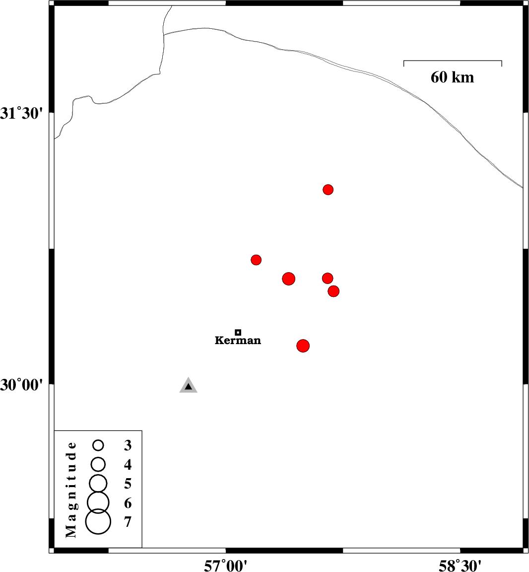 | 2025/02/20 | 19:53:33.2 | 23:23:33.2 | 30.584 | 57.402 | 12 | ML:3.7 | Kerman Province, 45 km North-East of Kerman | ||