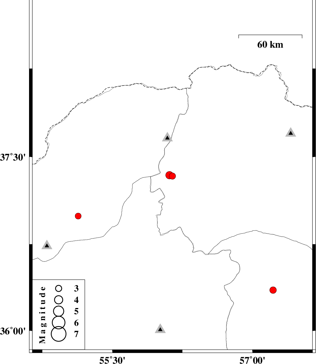 | 2025/03/05 | 21:04:28.5 | 00:34:28.5 | 37.335 | 56.143 | 16 | ML:3.1 | Khorasan(north) Province, 48 km North-West of Jajarm | ||