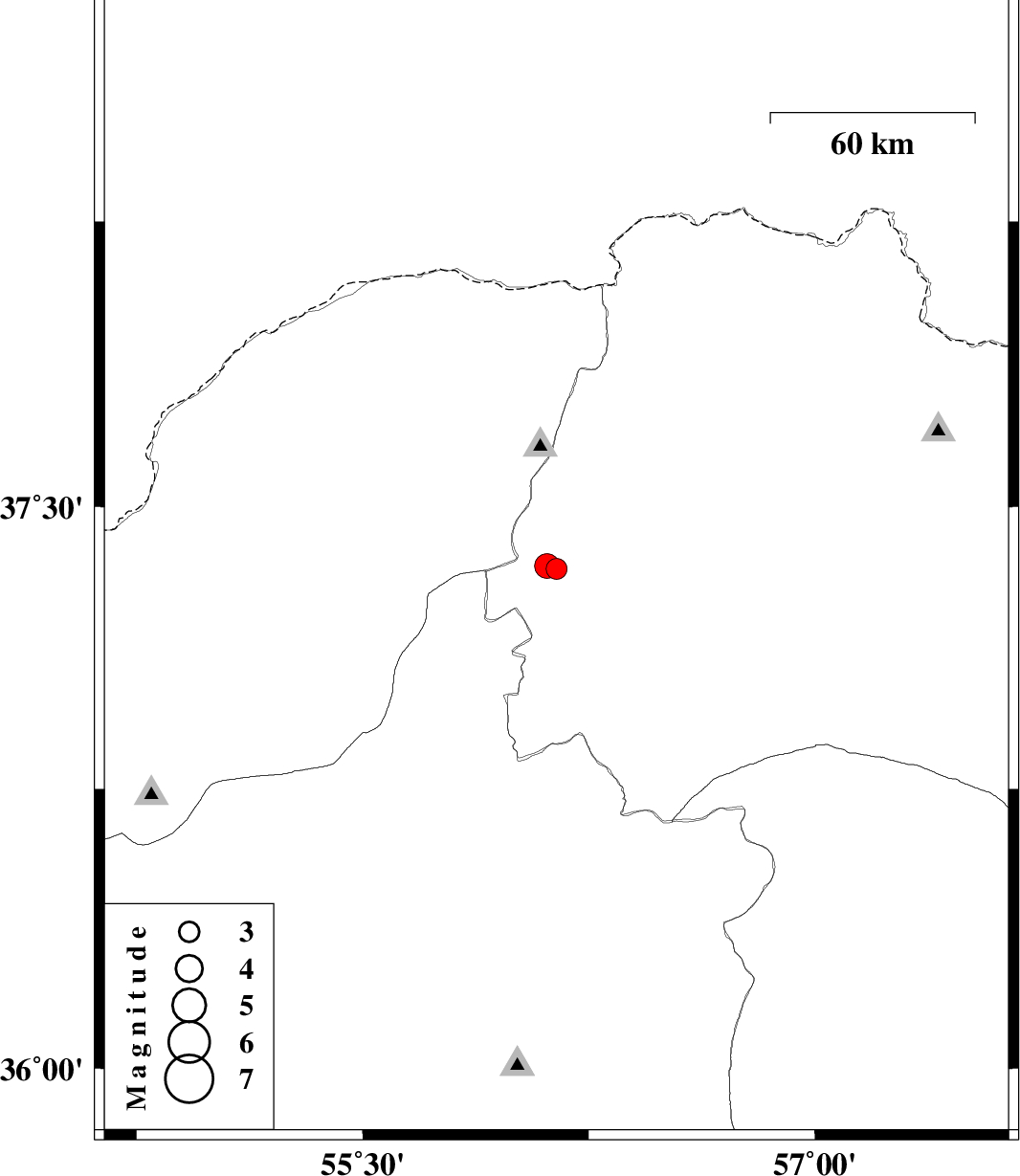| 2025/03/05 | 21:04:28.5 | 00:34:28.5 | 37.335 | 56.143 | 16 | ML:3.1 | Khorasan(north) Province, 48 km North-West of Jajarm | ||