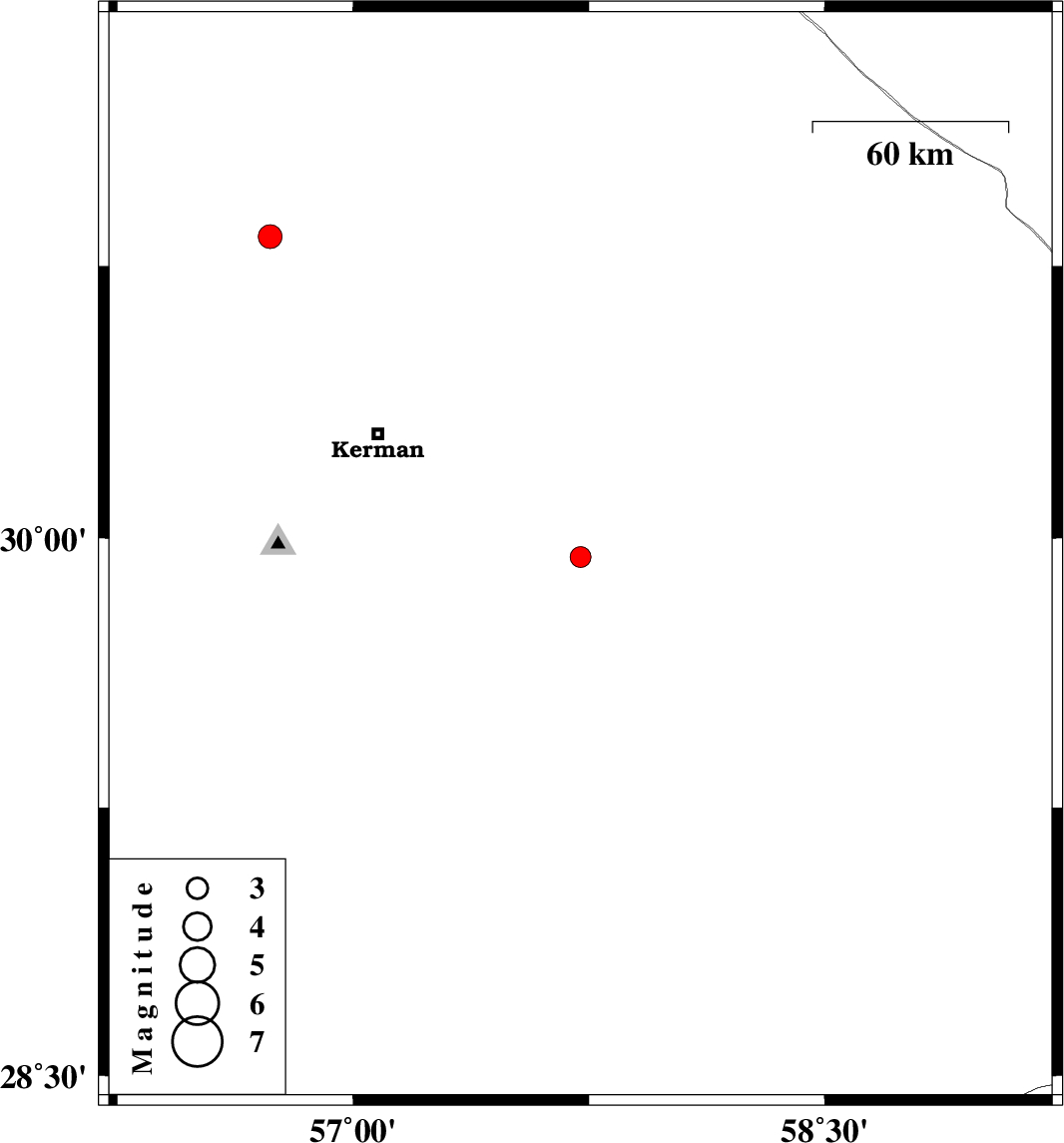 | 2025/03/05 | 05:52:55.9 | 09:22:55.9 | 29.947 | 57.723 | 12 | ML:3 | Kerman Province, 73 km South-East of Kerman | ||