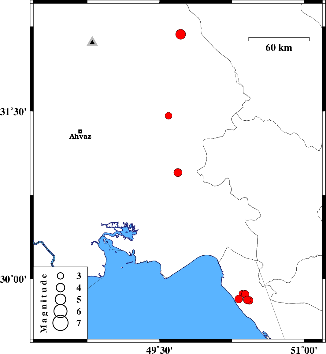 | 2025/03/09 | 14:13:42.5 | 17:43:42.5 | 29.866 | 50.357 | 12 | ML:3 | Khoozestan Province, 36 km North-West of Bandar-e genaveh | ||