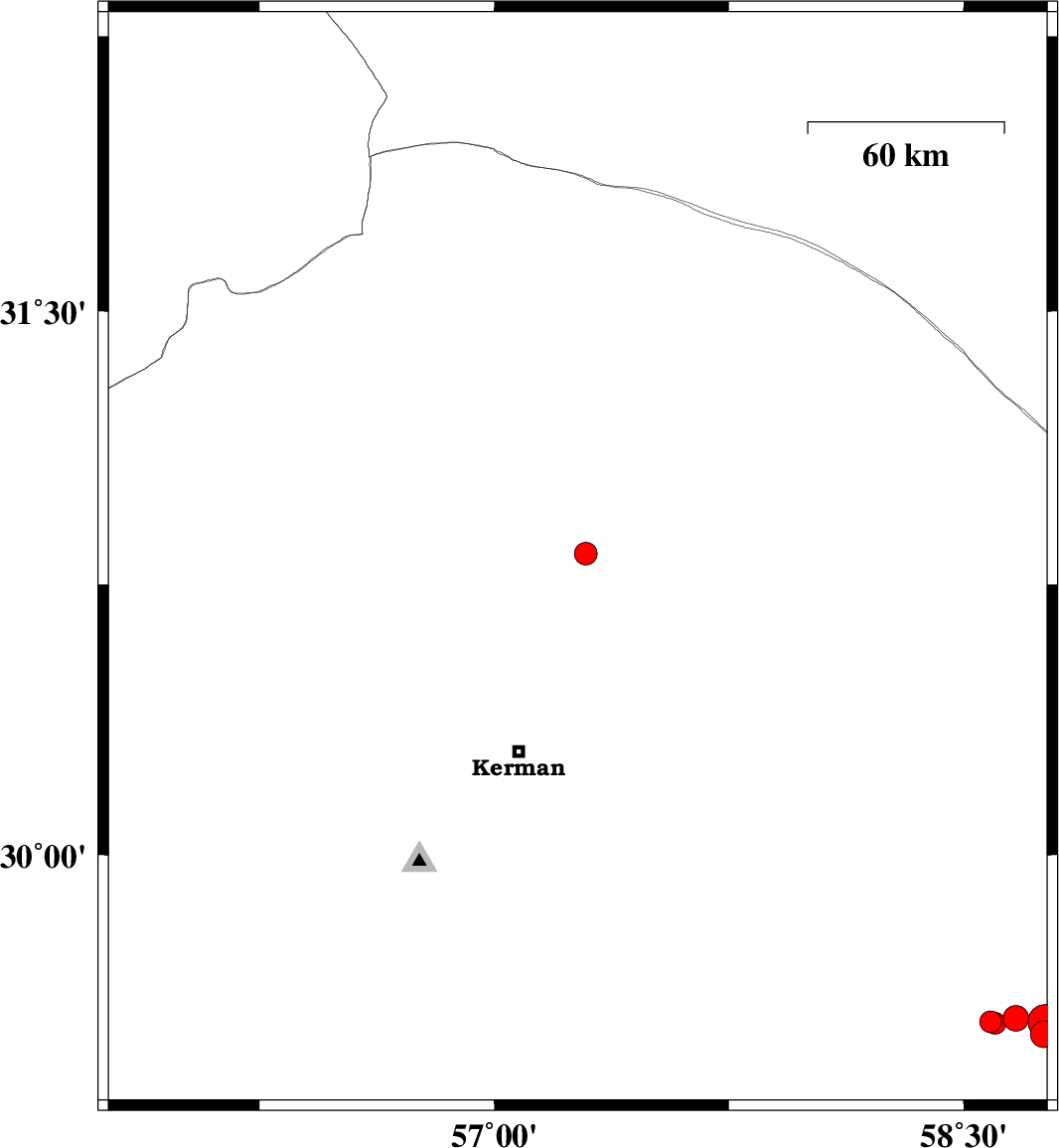 | 2025/03/24 | 11:41:49.6 | 15:11:49.6 | 30.773 | 57.356 | 12 | ML:3.8 | Kerman Province, 60 km North-East of Kerman | ||