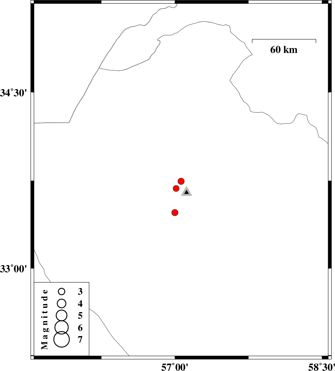 | 2025/03/17 | 06:43:12.9 | 10:13:12.9 | 33.745 | 57.063 | 9 | ML:3 | Yazd Province, 21 km North-East of Tabas | ||