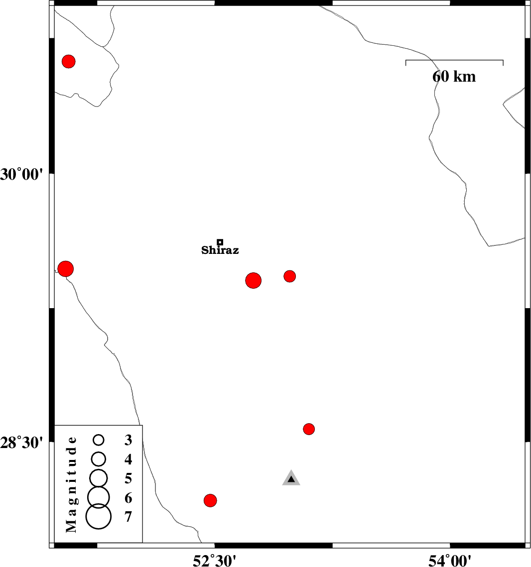 | 2025/03/10 | 08:46:23.0 | 12:16:23.0 | 29.47 | 51.549 | 12 | ML:4.5 | Fars Province, 20 km South-West of Kazerun |