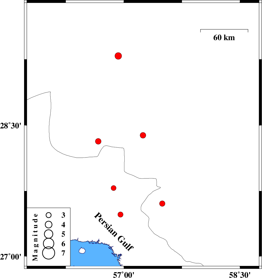 | 2025/04/01 | 07:26:37.0 | 10:56:37.0 | 27.784 | 56.868 | 8 | ML:3 | Hormozgan Province, 54 km North-West of Dehbarez | ||