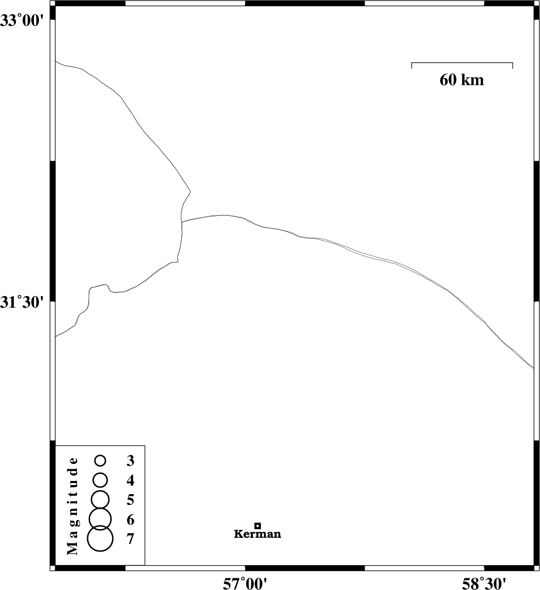 | 2025/04/14 | 15:05:55.1 | 18:35:55.1 | 31.572 | 57.31 | 12 | ML:3.3 | Kerman Province, 58 km North-East of Ravar |