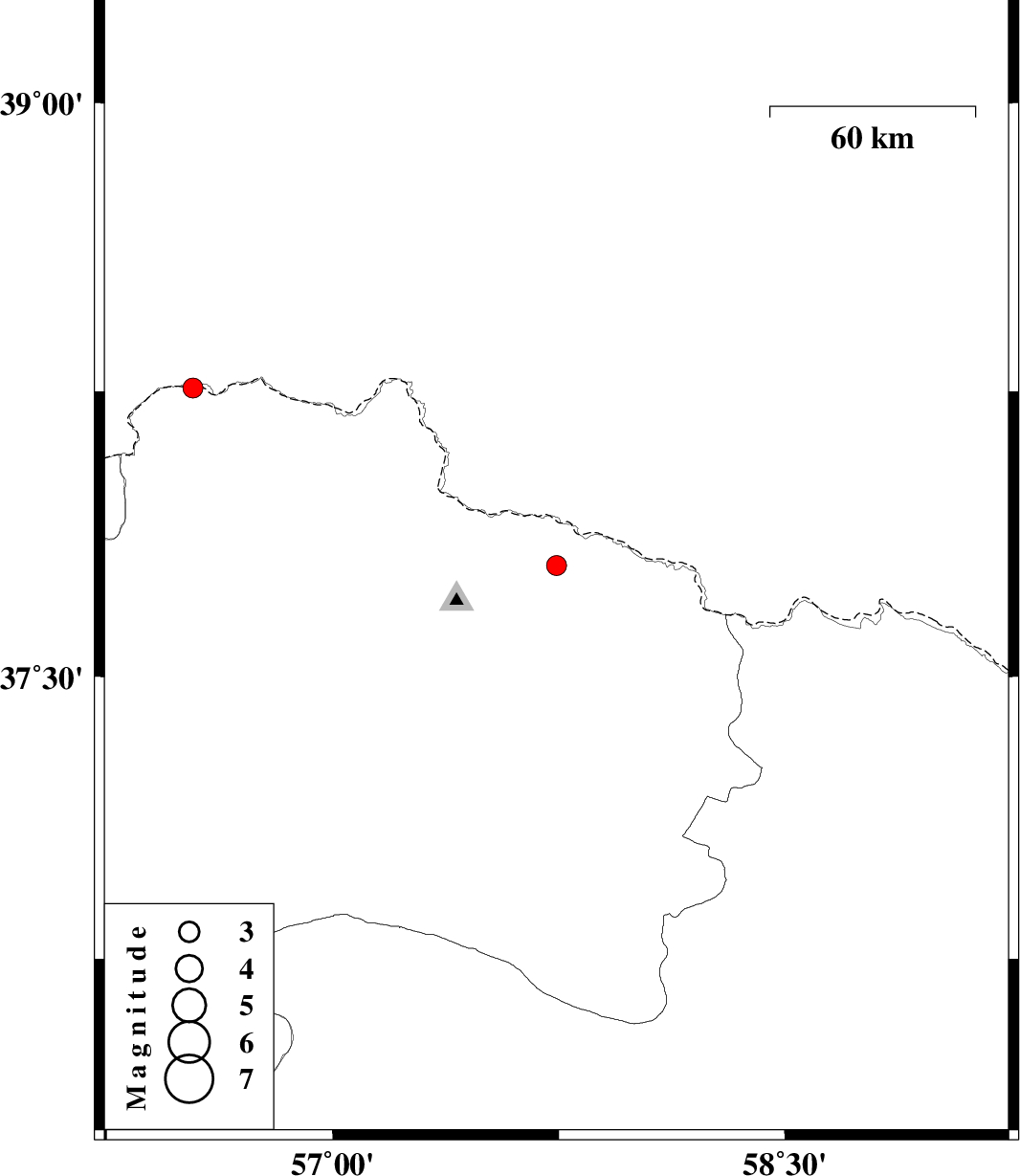 | 2025/04/18 | 07:20:04.1 | 10:50:04.1 | 38.258 | 56.536 | 15 | ML:3 | Khorasan(north) Province, 86 km North-West of Ashkhaneh |