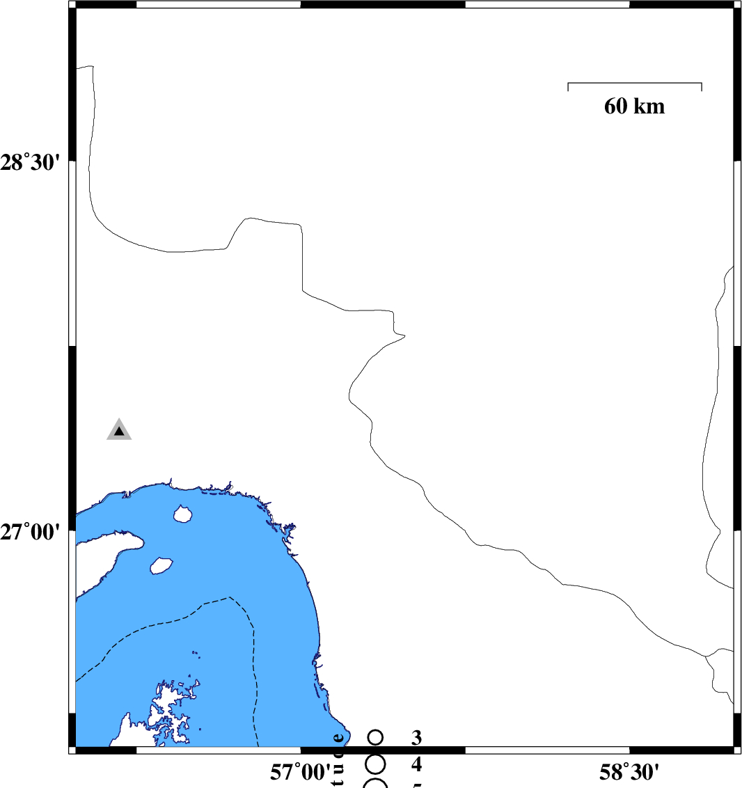 | 2025/04/01 | 07:26:37.0 | 10:56:37.0 | 27.784 | 56.868 | 8 | ML:3 | Hormozgan Province, 54 km North-West of Dehbarez | ||