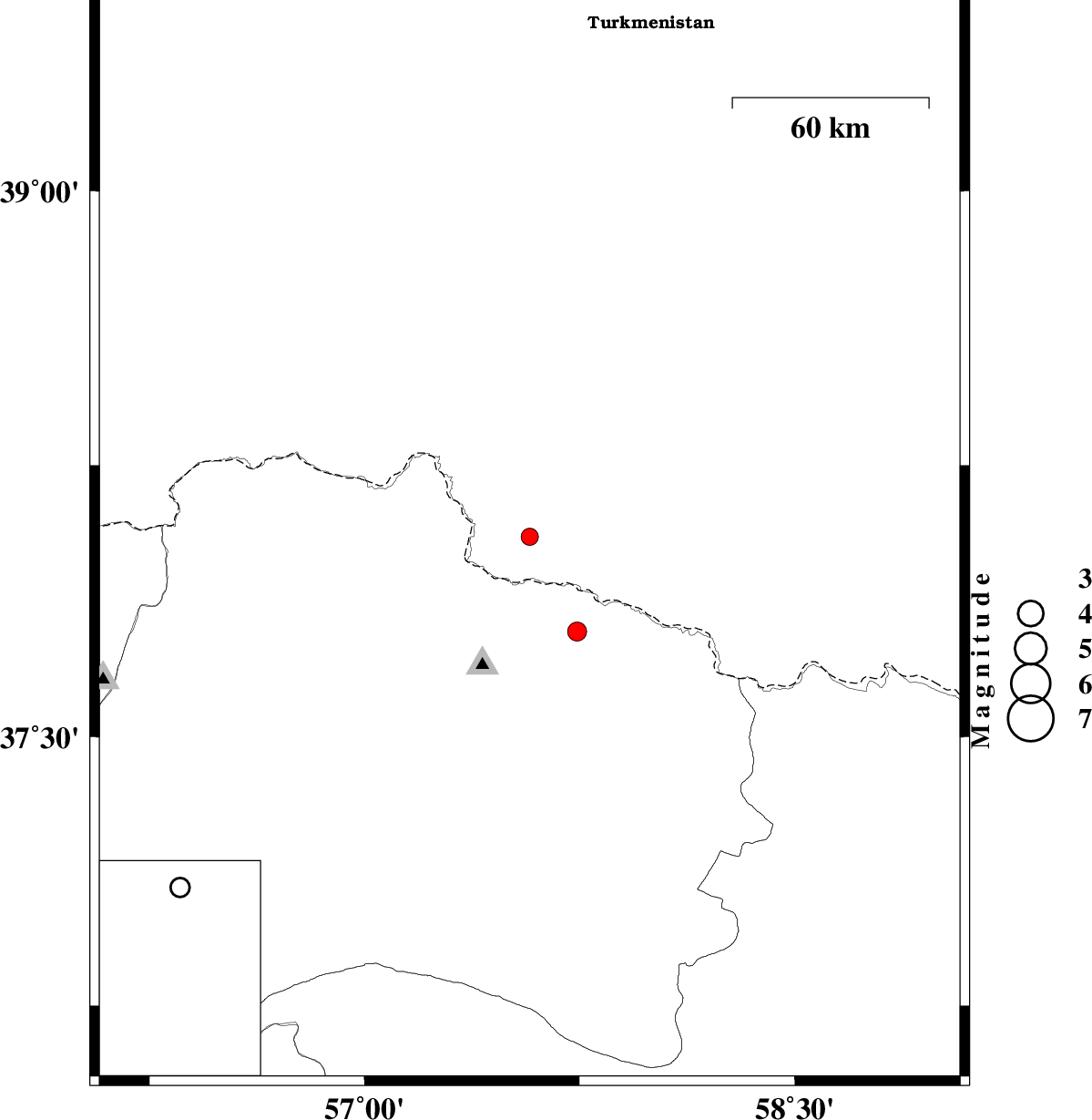 | 2025/04/26 | 15:33:19.3 | 19:03:19.3 | 38.053 | 57.576 | 12 | ML:2.7 | Turkmenistan, 68 km North-East of Bojnurd | ||
