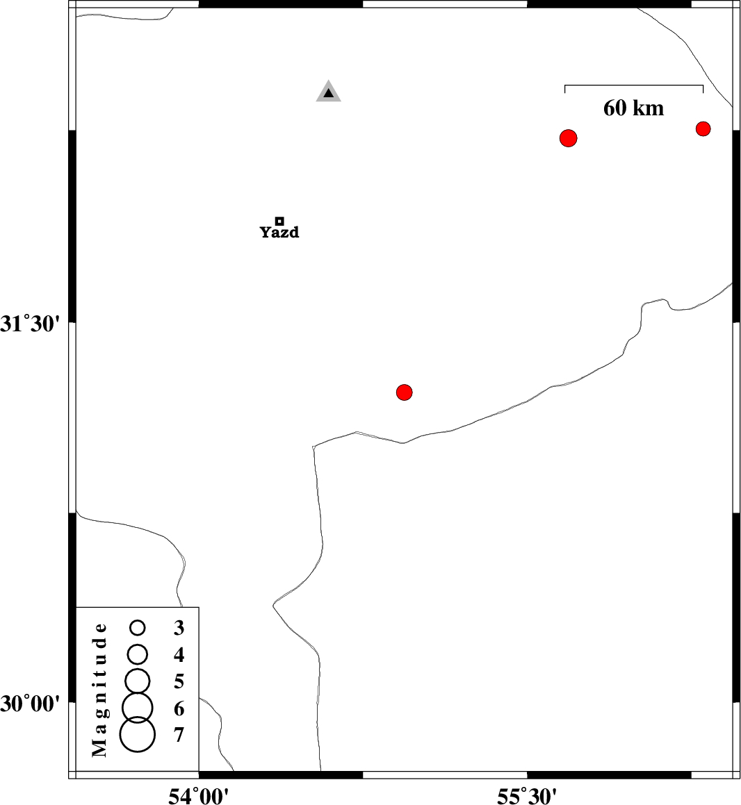 | 2025/04/29 | 10:57:40.8 | 14:27:40.8 | 31.225 | 54.938 | 12 | ML:3.2 | Yazd Province, 61 km South-West of Bafq | ||