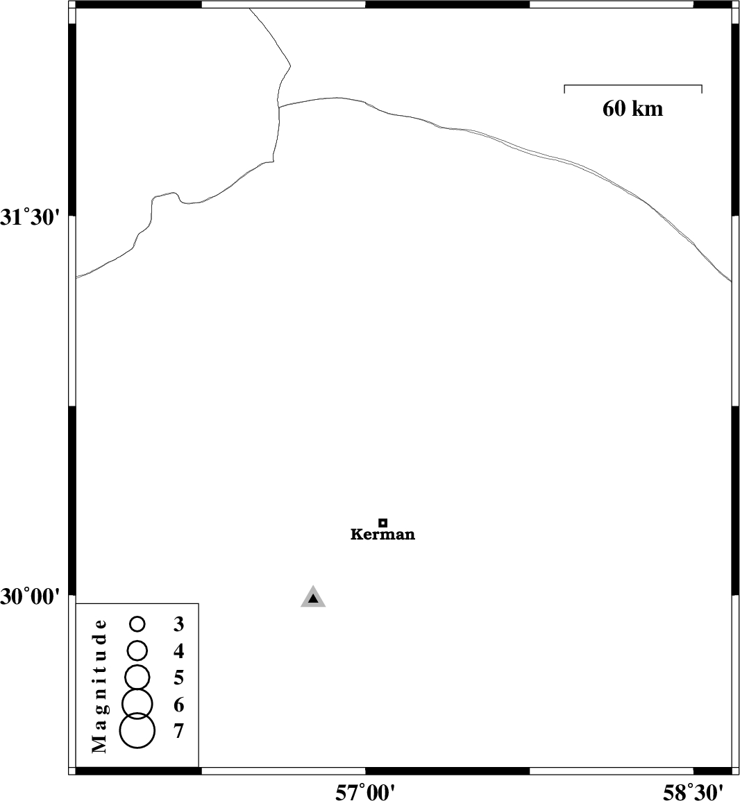 | 2025/04/30 | 00:11:54.9 | 03:41:54.9 | 30.811 | 57.174 | 12 | ML:2.8 | Kerman Province, 58 km -East of Zarand |