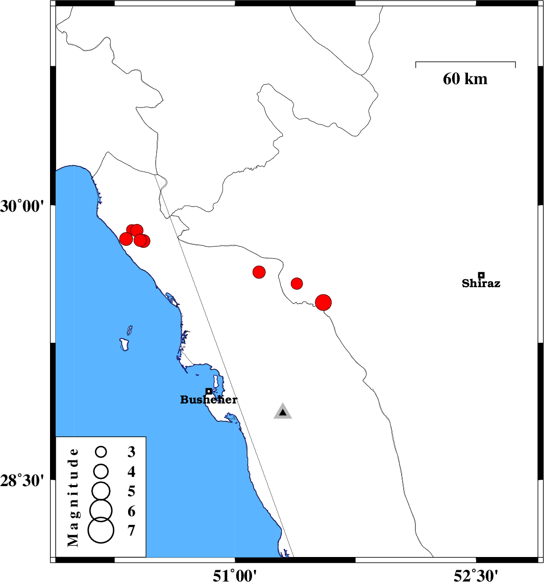 2025/03/09 14:13:42.5 17:43:42.5 29.86650.35712 ML:3 Khoozestan Province, 36 km North-West of Bandar-e genaveh