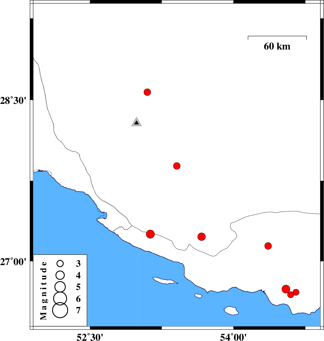 | 2025/04/05 | 01:10:14.6 | 04:40:14.6 | 26.685 | 54.596 | 12 | ML:3 | Hormozgan Province, 31 km North-West of Bandar-e lengeh | ||