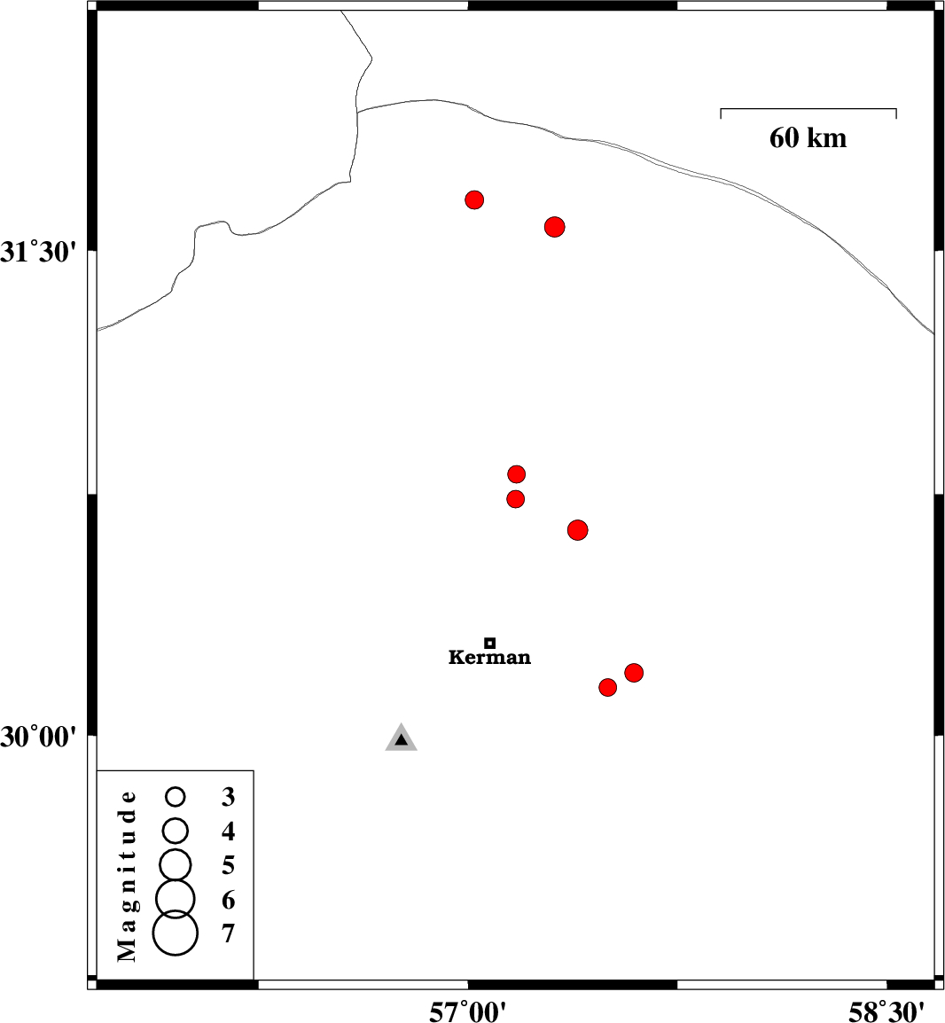 | 2025/04/17 | 20:00:41.4 | 23:30:41.4 | 30.639 | 57.392 | 16 | ML:3.3 | Kerman Province, 49 km North-East of Kerman | ||