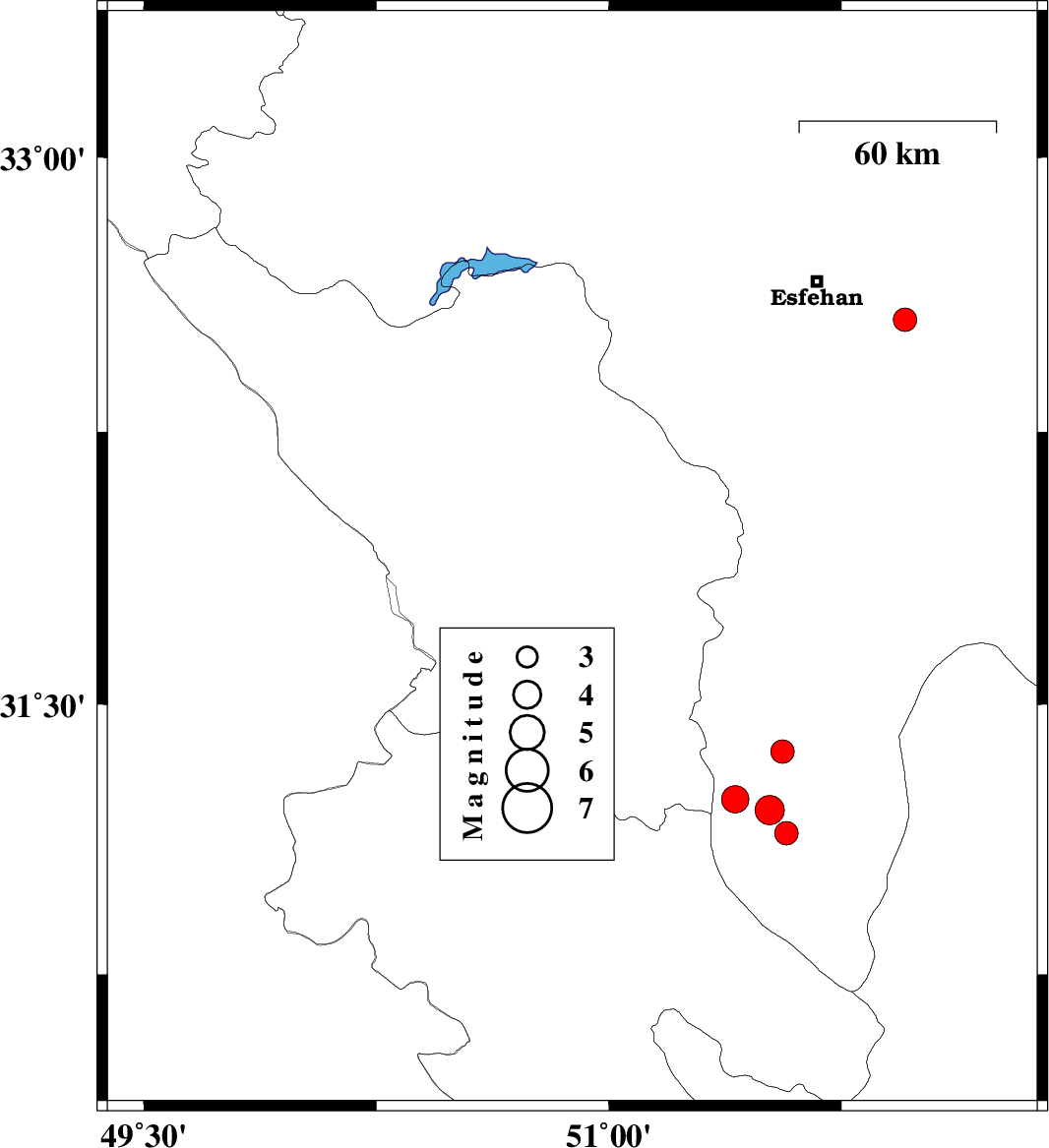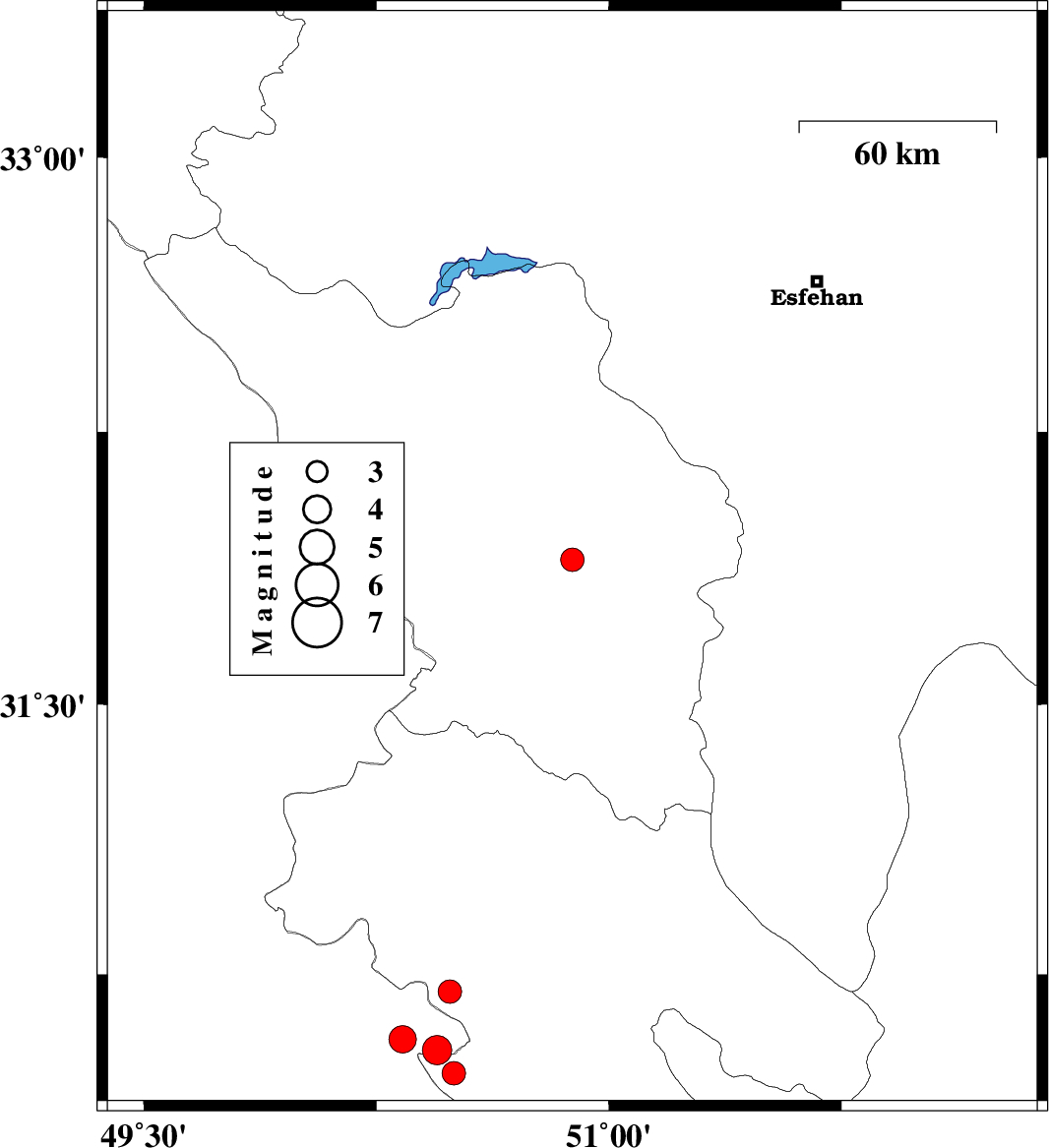 | 2025/01/22 | 06:06:38.2 | 09:36:38.2 | 31.898 | 50.882 | 12 | ML:3.4 | Chaharmahal Bakhtiari Province, 24 km -East of Ardel | ||