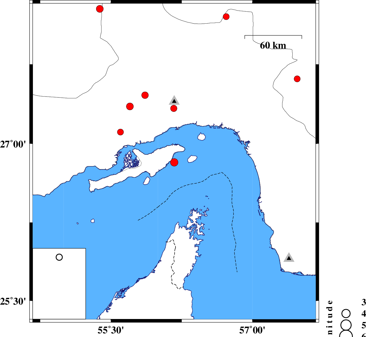 | 2025/05/23 | 14:30:17.1 | 18:00:17.1 | 26.823 | 56.171 | 12 | ML:3.6 | Persian Gulf, 18 km South of Qeshm | ||
