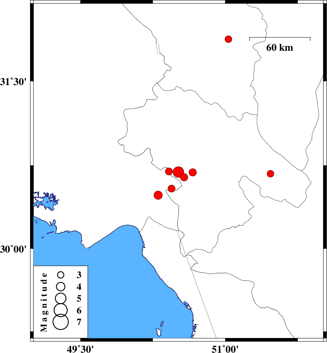 | 2025/05/27 | 00:39:48.6 | 04:09:48.6 | 30.689 | 50.515 | 12 | ML:5.1 | Kohkiluieh va boyerahmad Province, 12 km of Dehdasht | ||