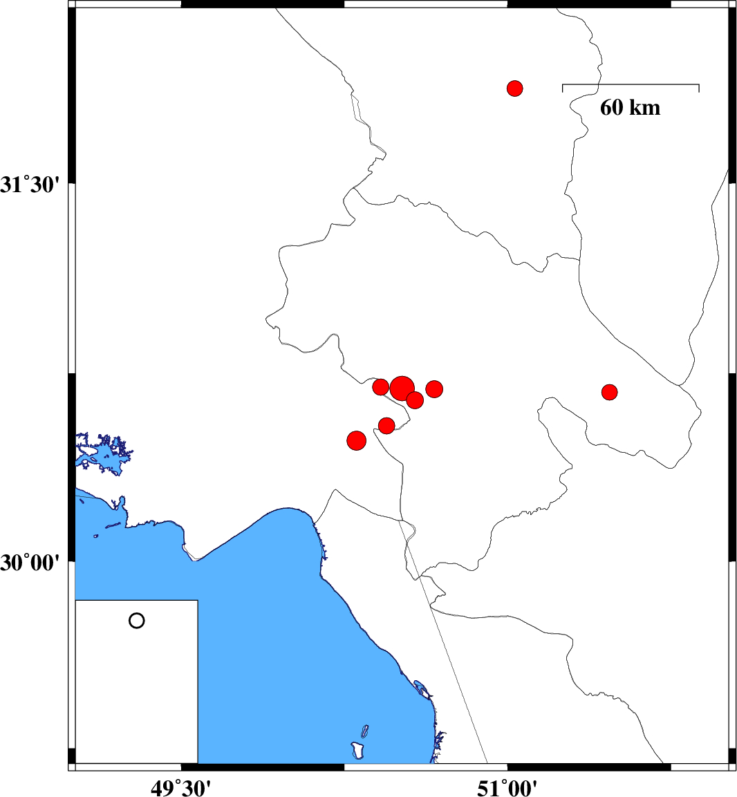 2025/05/27 14:31:54.5 18:01:54.5 30.54150.44412 ML:3.4 Khoozestan Province, 20 km -East of Behbahan