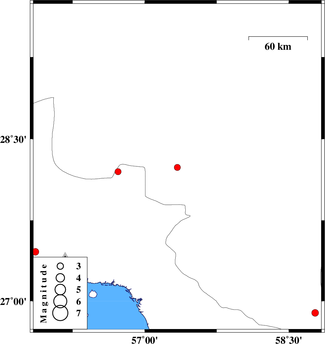 | 2025/05/26 | 15:02:41.1 | 18:32:41.1 | 28.238 | 57.34 | 10 | ML:3 | Kerman Province, 47 km North-West of Kahnuj | ||