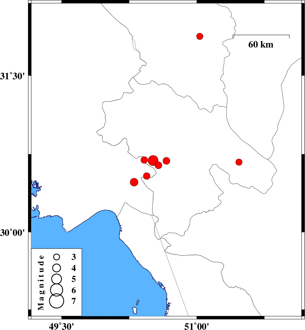 | 2025/05/27 | 00:39:48.6 | 04:09:48.6 | 30.689 | 50.515 | 12 | ML:5.1 | Kohkiluieh va boyerahmad Province, 12 km of Dehdasht | ||