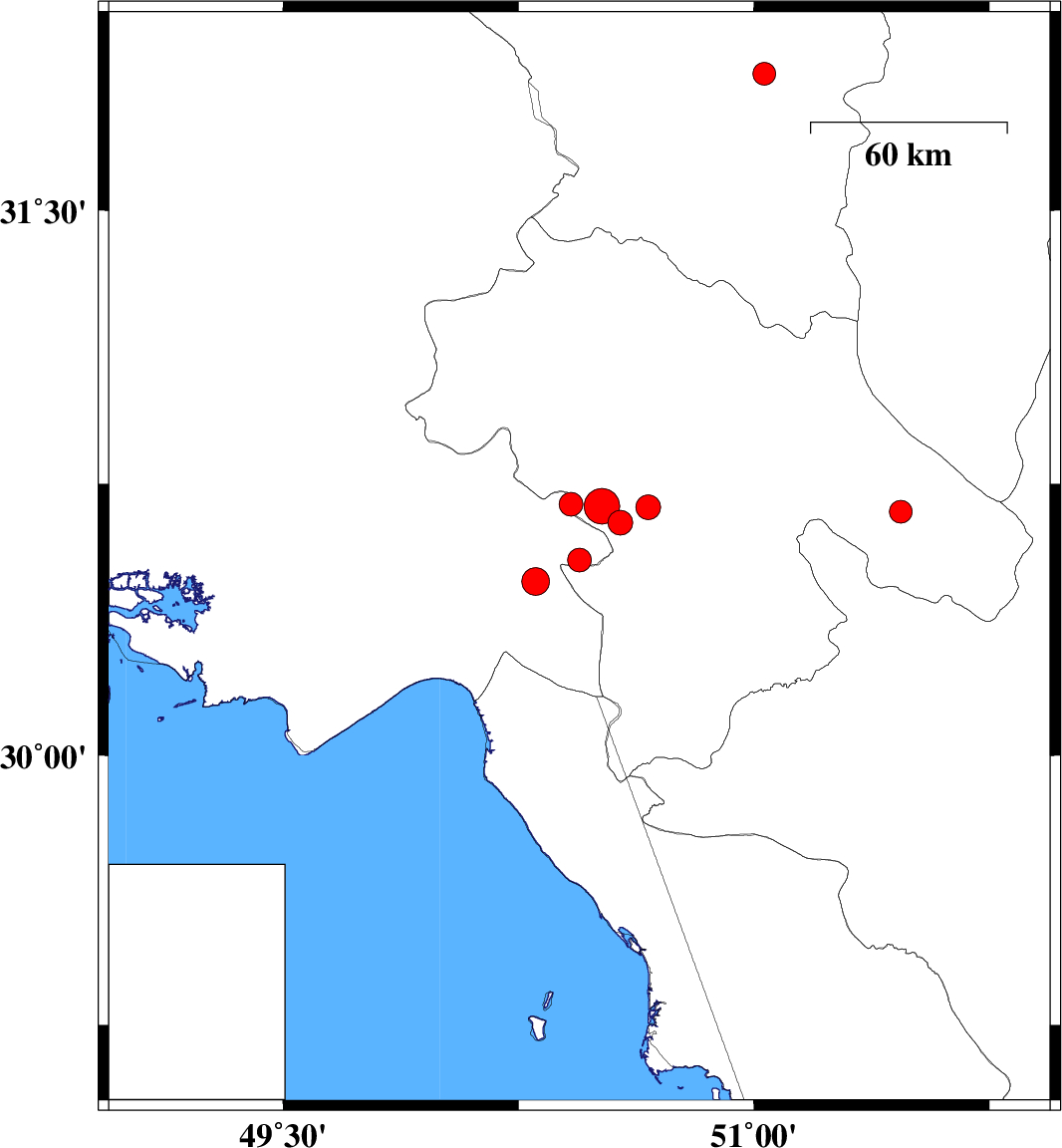 Map Region : lat:29.041-32.041  lon:48.944-51.944