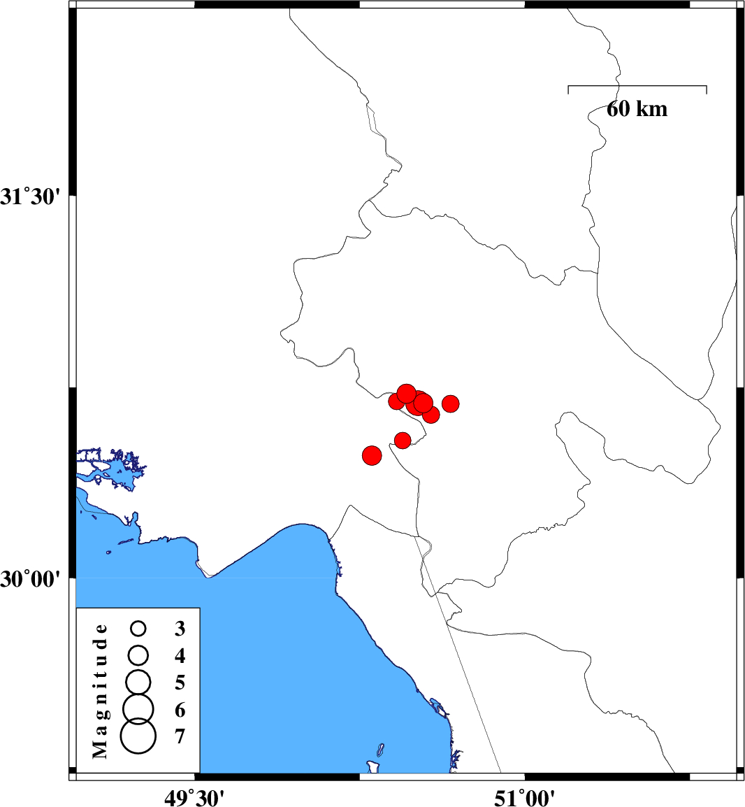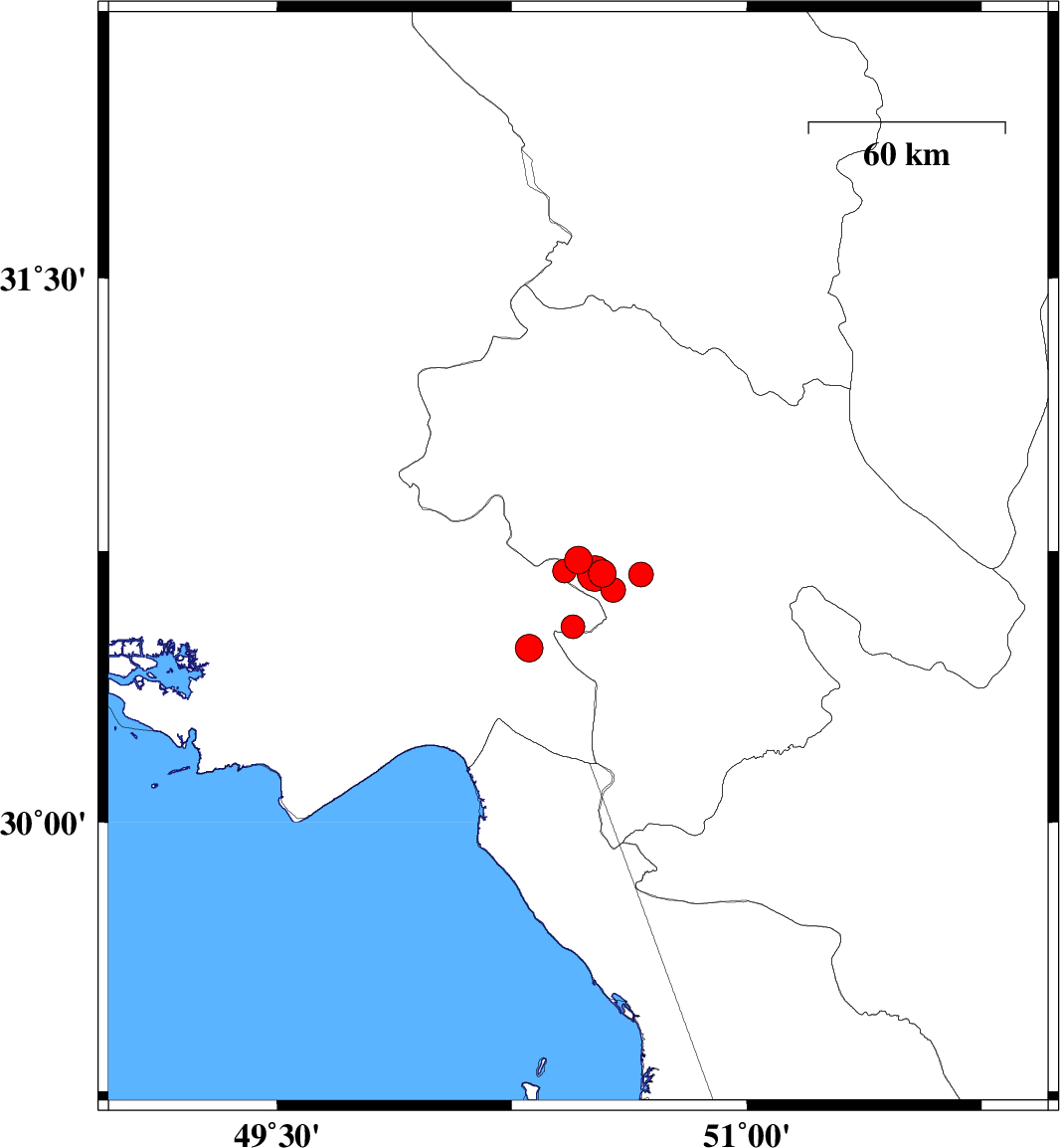 | 2025/05/27 | 15:36:42.5 | 19:06:42.5 | 30.643 | 50.574 | 12 | ML:3.5 | Kohkiluieh va boyerahmad Province, 16 km South of Dehdasht | ||