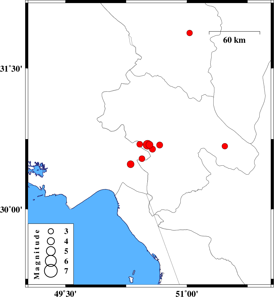 | 2025/05/27 | 00:39:48.6 | 04:09:48.6 | 30.689 | 50.515 | 12 | ML:5.1 | Kohkiluieh va boyerahmad Province, 12 km of Dehdasht | ||