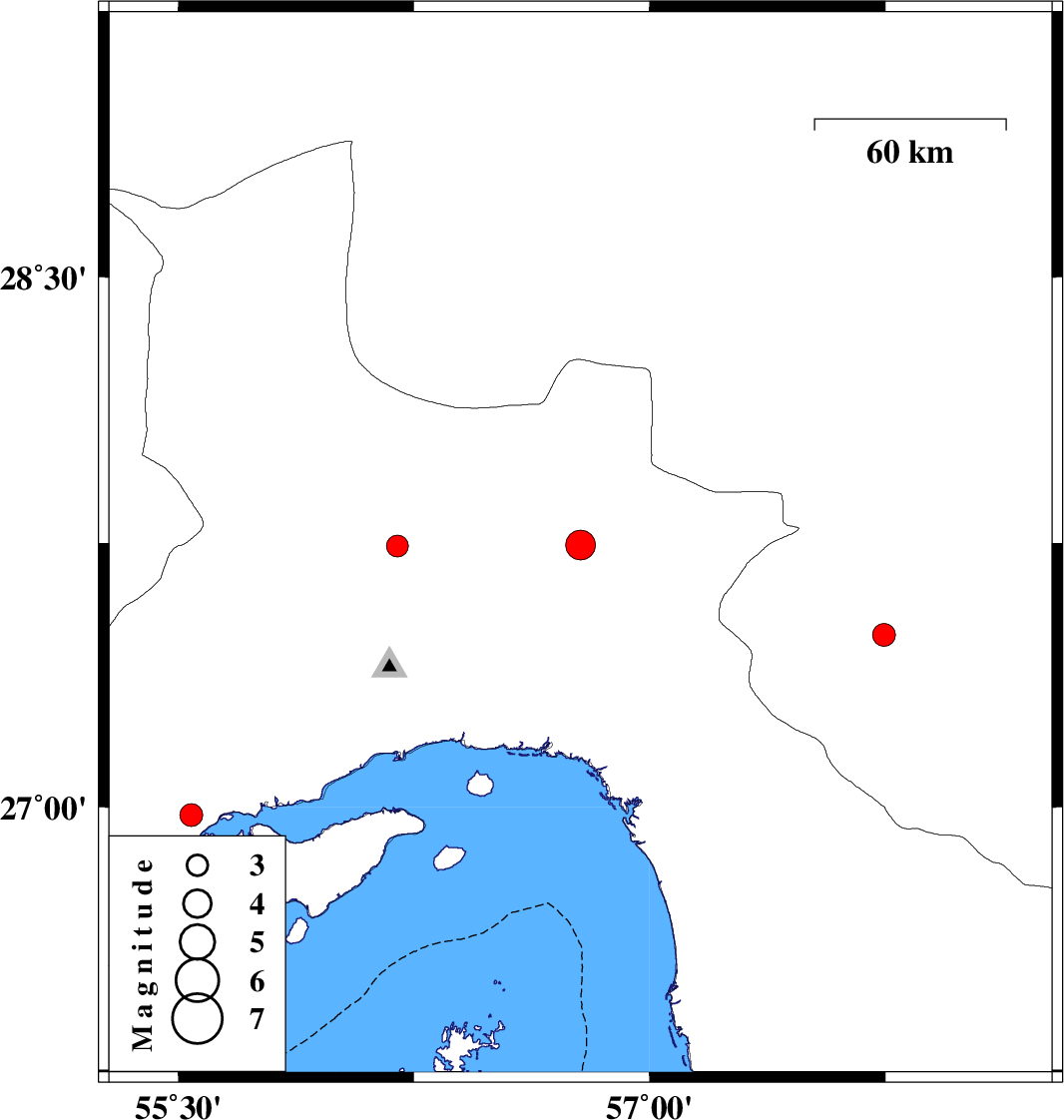 | 2025/06/16 | 00:42:02.3 | 04:12:02.3 | 26.977 | 55.542 | 12 | ML:3.2 | Hormozgan Province, 72 km -West of Qeshm |