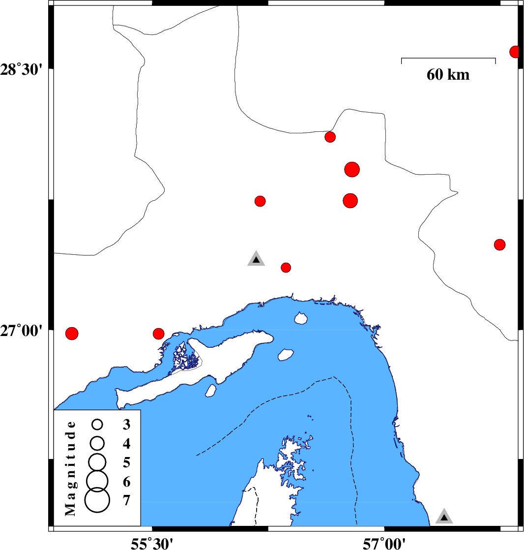 | 2025/07/06 | 02:28:47.4 | 05:58:47.4 | 26.978 | 54.982 | 12 | ML:3.6 | Hormozgan Province, 52 km North-East of Bandar-e lengeh | ||