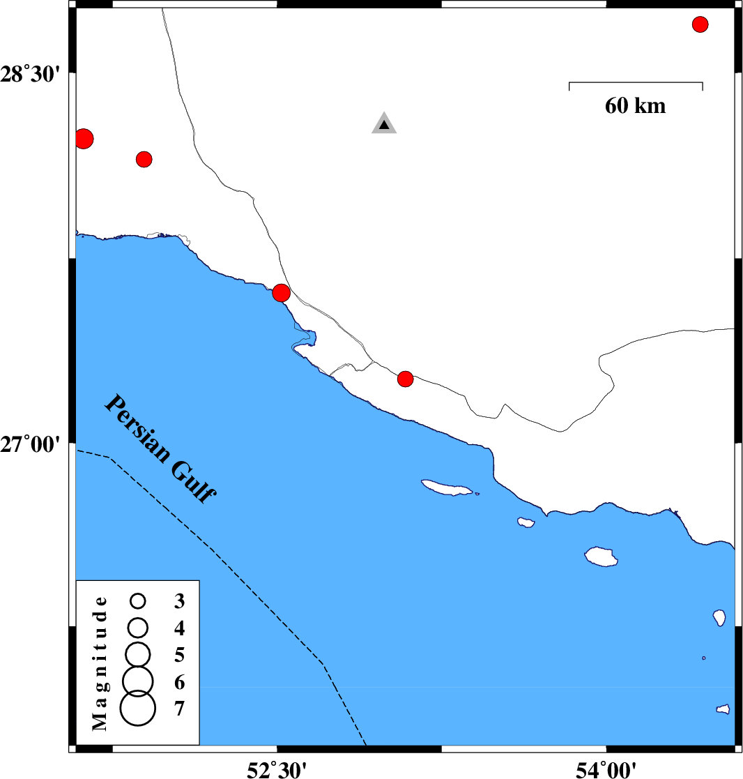 | 2025/08/09 | 20:14:30.8 | 23:44:30.8 | 28.151 | 51.894 | 12 | ML:3.3 | Bushehr Province, 40 km North-West of Bandar-e kangan | ||