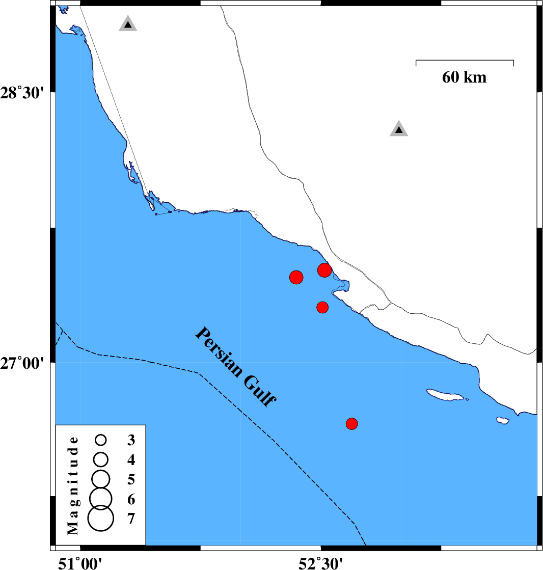 | 2025/08/29 | 13:11:51.5 | 16:41:51.5 | 27.474 | 52.346 | 12 | ML:3.8 | Persian Gulf, 40 km South of Jam |