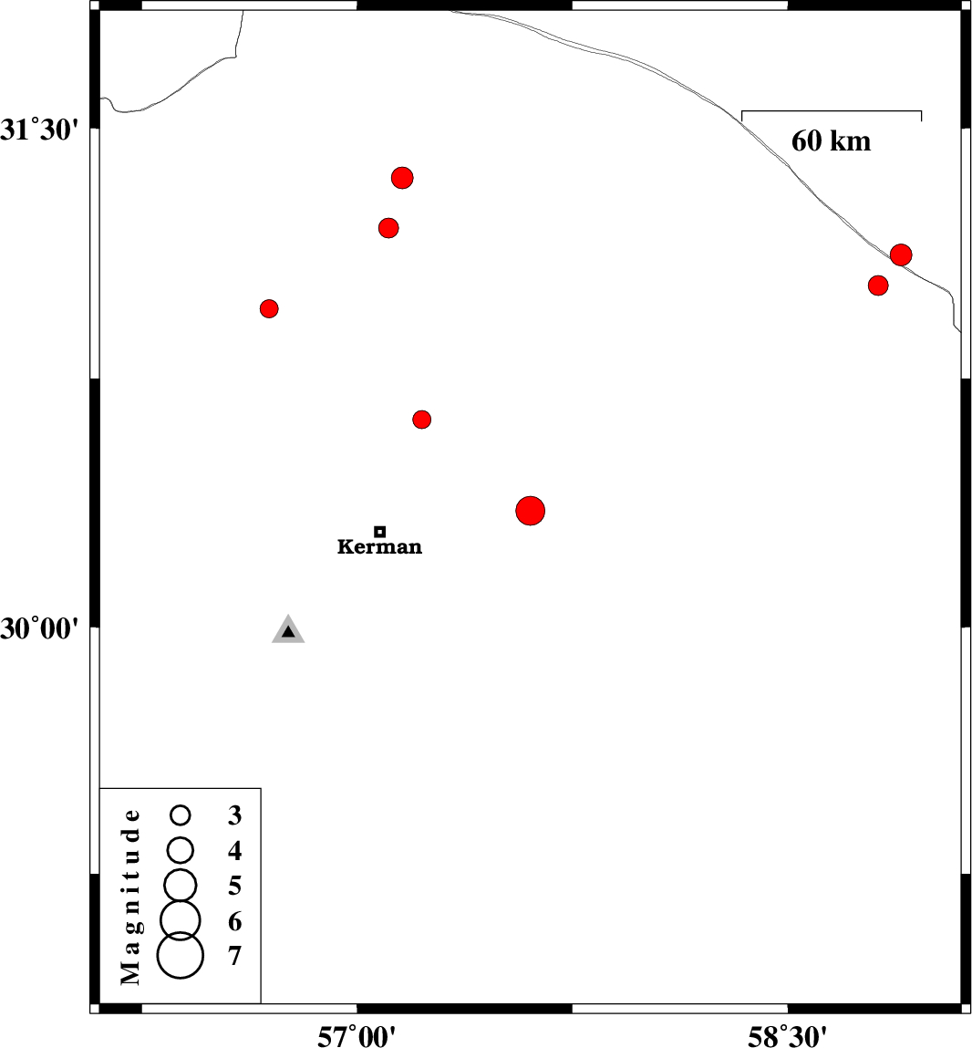2025/08/31 19:56:44.1 23:26:44.1 30.35257.60312 ML:4.5 Kerman Province, 51 km -East of Kerman