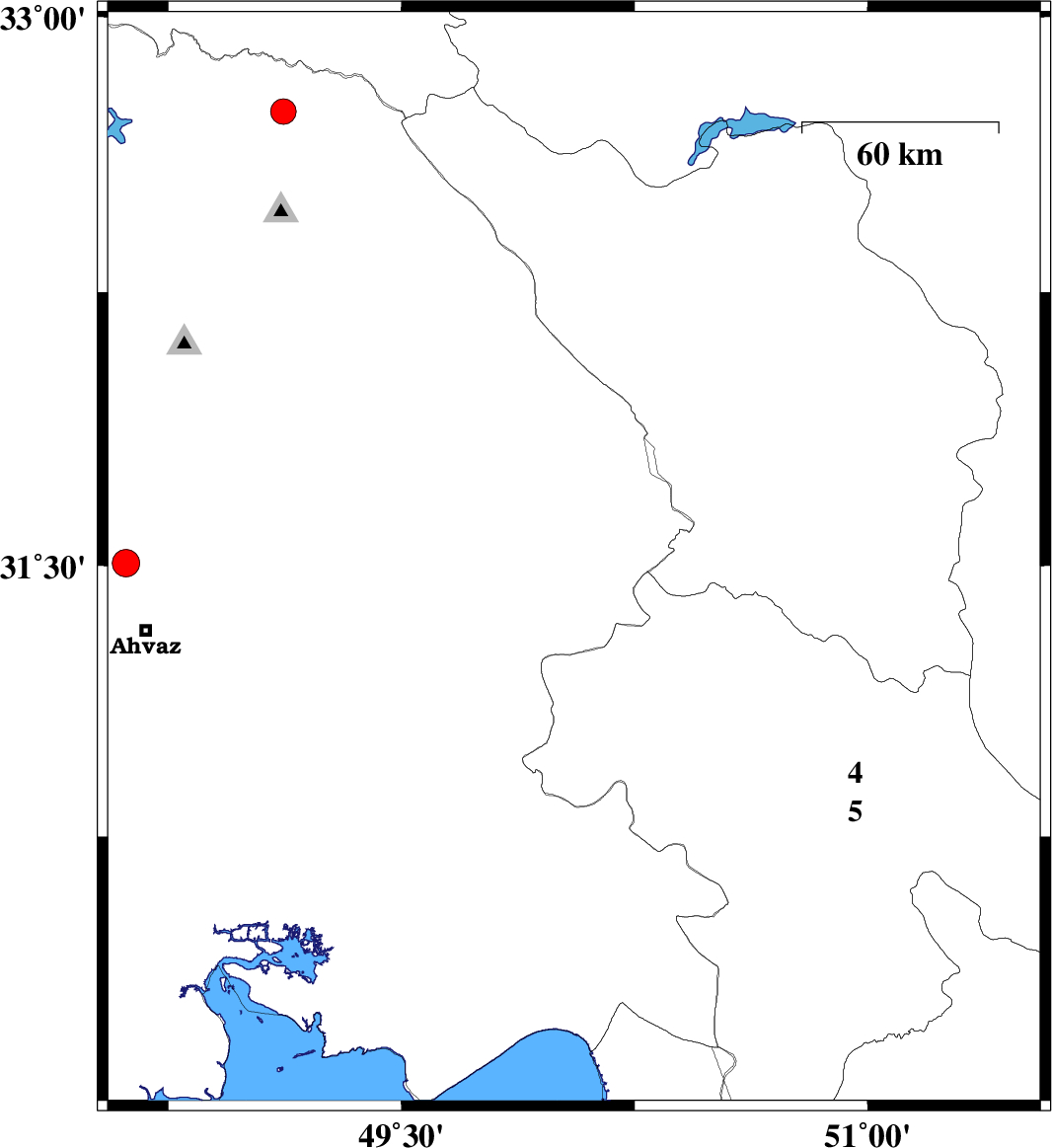 | 2025/08/30 | 19:43:45.1 | 23:13:45.1 | 31.515 | 50.055 | 12 | ML:3.7 | Khoozestan Province, 15 km -East of Bagh Malek | ||