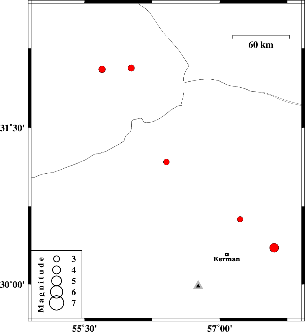 | 2025/08/31 | 22:04:45.3 | 01:34:45.3 | 30.626 | 57.225 | 12 | ML:2.8 | Kerman Province, 40 km North-East of Kerman | ||