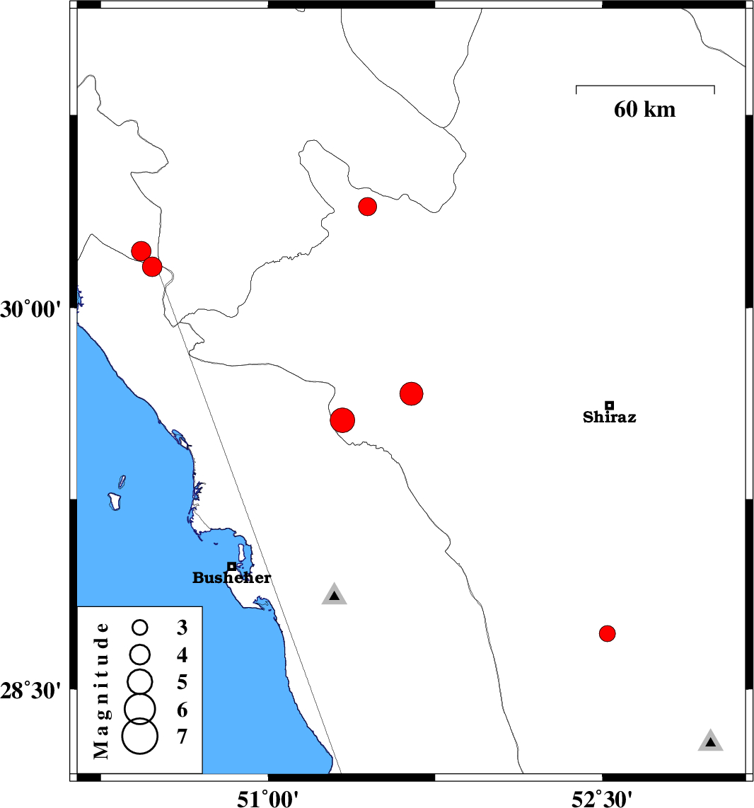 | 2025/09/14 | 04:43:46.5 | 08:13:46.5 | 29.664 | 51.643 | 12 | ML:4.7 | Fars Province, 5 km of Kazerun | ||