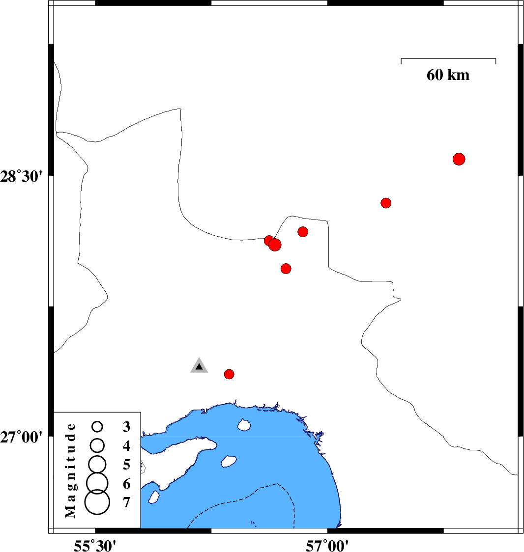 | 2025/07/28 | 10:20:55.8 | 13:50:55.8 | 28.179 | 56.84 | 12 | ML:3 | Hormozgan Province, 93 km South-East of Hajiabad | ||