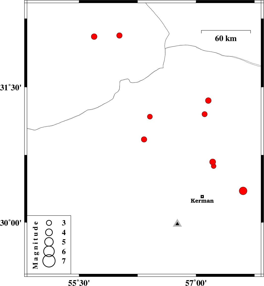 | 2025/08/31 | 22:04:45.3 | 01:34:45.3 | 30.626 | 57.225 | 12 | ML:2.8 | Kerman Province, 40 km North-East of Kerman | ||