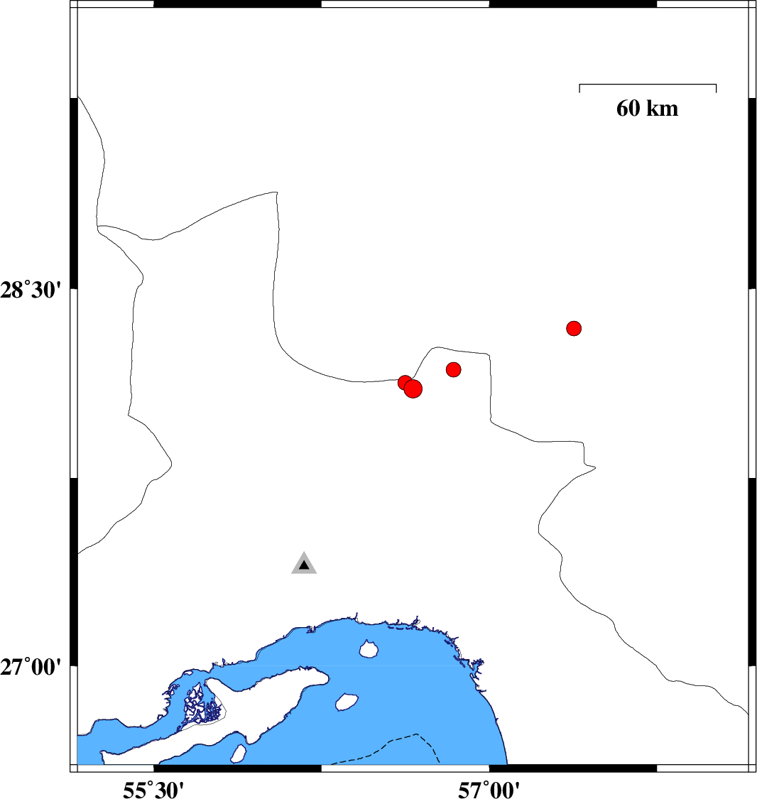 | 2025/07/28 | 10:20:55.8 | 13:50:55.8 | 28.179 | 56.84 | 12 | ML:3 | Hormozgan Province, 93 km South-East of Hajiabad | ||