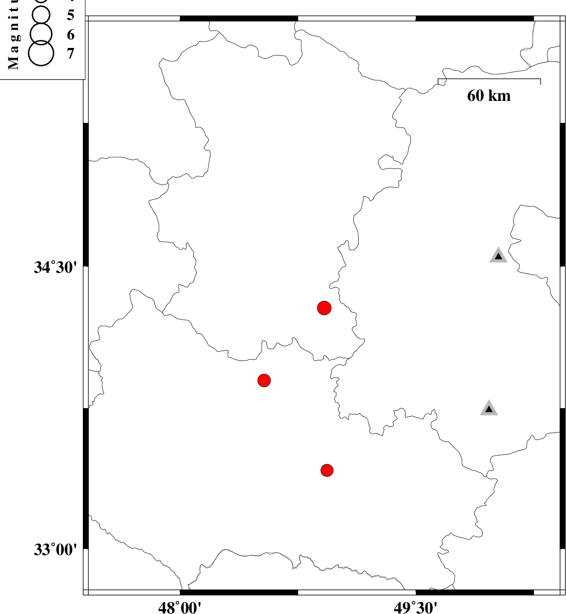 2025/09/12 | 04:18:45.2 | 07:48:45.2 | 33.419 | 48.934 | 12 | ML:3.5 | Lorestan Province, 15 km -West of Dorud |