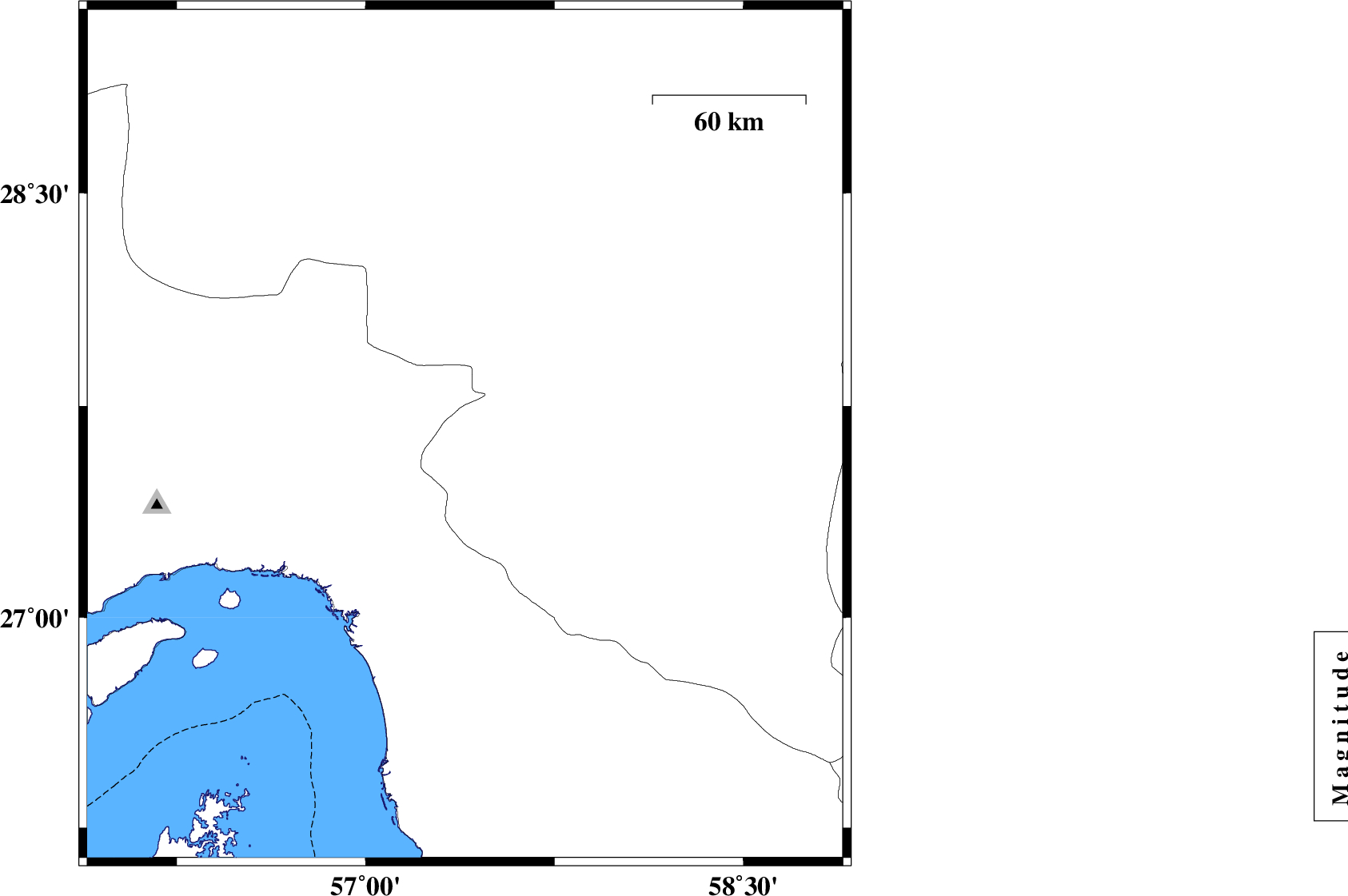 | 2025/09/28 | 16:11:50.9 | 19:41:50.9 | 27.644 | 57.395 | 12 | ML:3.1 | Kerman Province, 28 km North of Manujan | ||