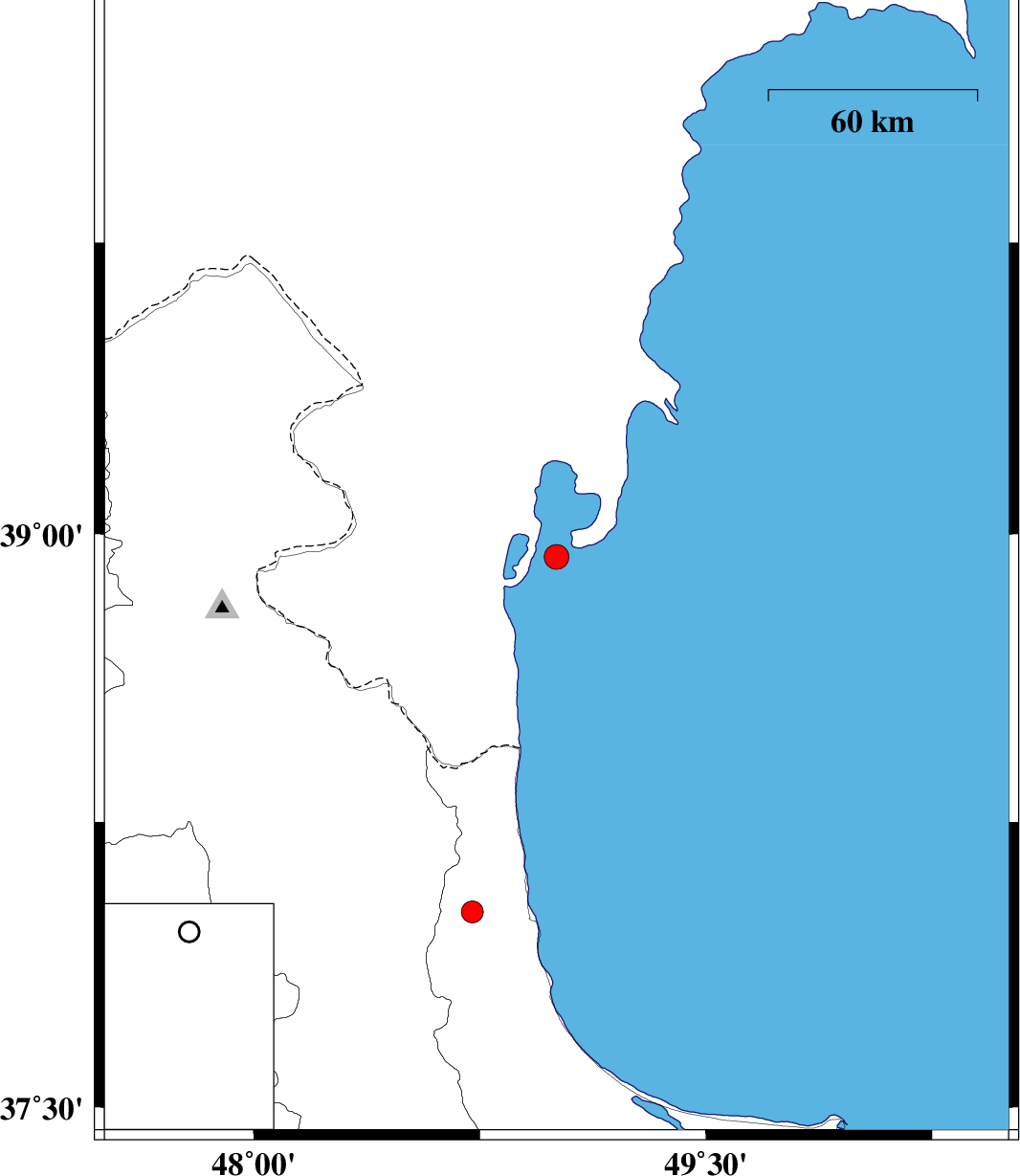 2025/10/05 | 01:36:16.3 | 05:06:16.3 | 38.941 | 49.004 | 12 | ML:3.6 | Caspian Sea, 59 km North-East of Astara | ||