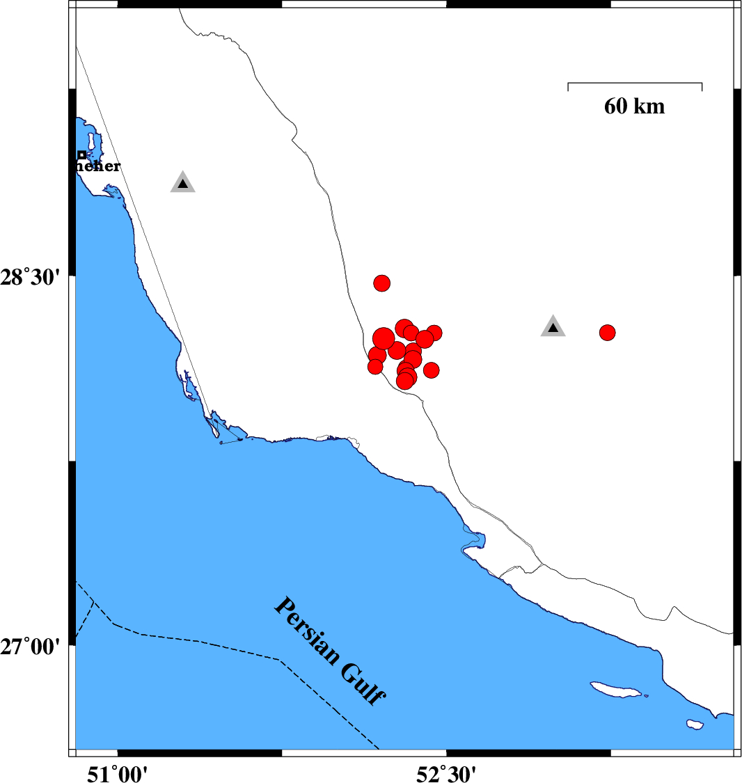 Fars Province, 36 km North-East of Bandar-e kangan | |