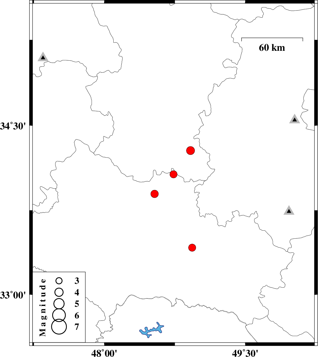 | 2025/09/12 | 04:18:45.2 | 07:48:45.2 | 33.419 | 48.934 | 12 | ML:3.5 | Lorestan Province, 15 km -West of Dorud |